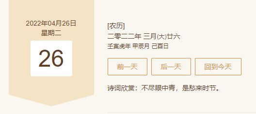 农历:二零二二年三月(大)廿六。